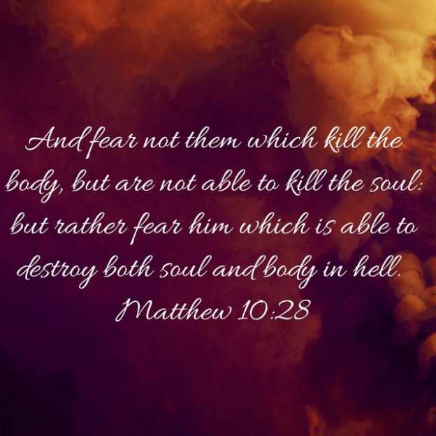 Fear them not therefore: for there is nothing covered, that shall not be revealed; and hid, that shall not be known. What I tell you in darkness, that speak ye in light: and what ye hear in the ear, that preach ye upon the housetops. And fear not them which kill the body, but are not able to kill the soul: but rather fear him which is able to destroy both soul and body in hell. Matthew 10:26-28