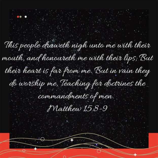 Ye hypocrites, well did Esaias prophesy of you, saying, This people draweth nigh unto me with their mouth, and honoureth me with their lips; but their heart is far from me. But in vain they do worship me, teaching for doctrines the commandments of men. Matthew 15:7-9
