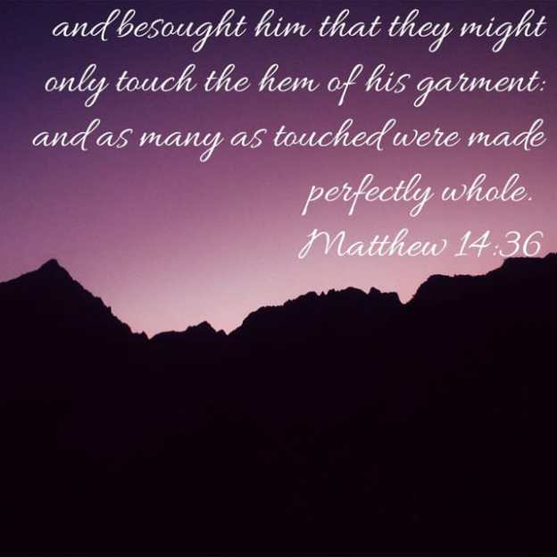 And when they were gone over, they came into the land of Gennesaret. And when the men of that place had knowledge of him, they sent out into all that country round about, and brought unto him all that were diseased; And besought him that they might only touch the hem of his garment: and as many as touched were made perfectly whole. Matthew 14:34-36
