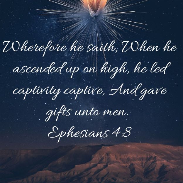 But unto every one of us is given grace according to the measure of the gift of Christ. Wherefore he saith, When he ascended up on high, he led captivity captive, and gave gifts unto men. (Now that he ascended, what is it but that he also descended first into the lower parts of the earth? He that descended is the same also that ascended up far above all heavens, that he might fill all things.) Ephesians 4:7-10