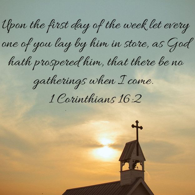 Now if you go back one verse Paul mentions the “Churches of Galatia” also. This was not just a commandment for the Church of Corinth, this appears to be a standard practice for the early Church to gather on Sunday morning for worship.