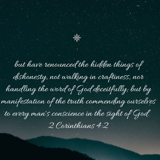 “But the manifestation of truth commending ourselves to every man’s conscience in the sight of God” Notice the keywords here “In the sight of God” Christ is watching your ministry! If your being deceitful , you might be able to fool people, but you can’t fool God, you will be under heavy judgment. Walk worthy of your calling, be led by the Holy Spirit, read and follow the Word of God