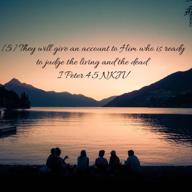 As Peter says here you will also give an account for your life, you words and actions we will all have to give an account for. This should be terrifying for everyone! To stand before a Holy God and explain your sinful thoughts and behavior, what will be your excuse? This is why Jesus said “Unless you are Born Again, you will not see the Kingdom of Heaven” (John 3:3) You can’t enter God’s Kingdom in your current state, you must be regenerated by the Holy Spirit, as Christ is ready to judge the living and the dead