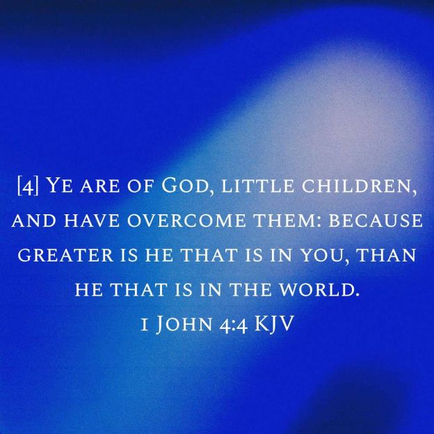 As the Apostle John says here “You are of God and have overcome them, because He (The Holy Spirit) who is in you (Church) is greater than He who is in the world” God has equipped his Church to overcome the world because the Holy Spirit lives inside his people. Greater is the Holy Spirit than is any demonic force that may come against you! Rebuke the demons in Jesus mighty name!