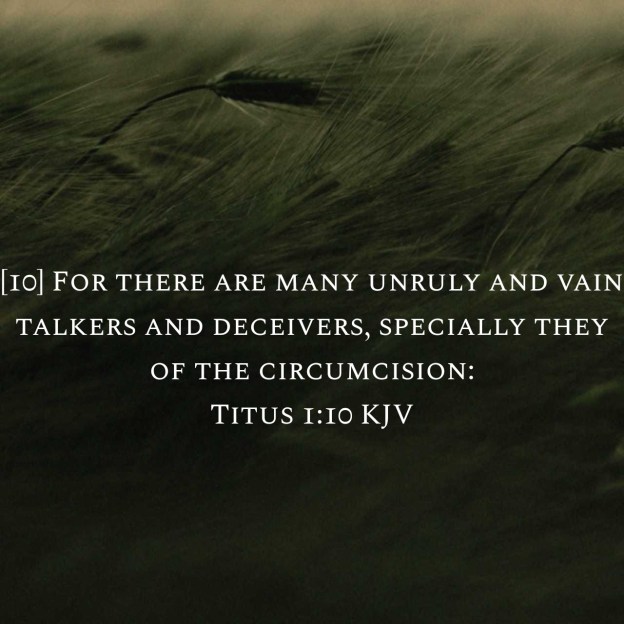 For there are many unruly and vain talkers and deceivers, specially they of the circumcision: Whose mouths must be stopped, who subvert whole houses, teaching things which they ought not, for filthy lucre’s sake. One of themselves, even a prophet of their own, said, The Cretians are alway liars, evil beasts, slow bellies. This witness is true. Wherefore rebuke them sharply, that they may be sound in the faith; Not giving heed to Jewish fables, and commandments of men, that turn from the truth. Titus 1:10-14