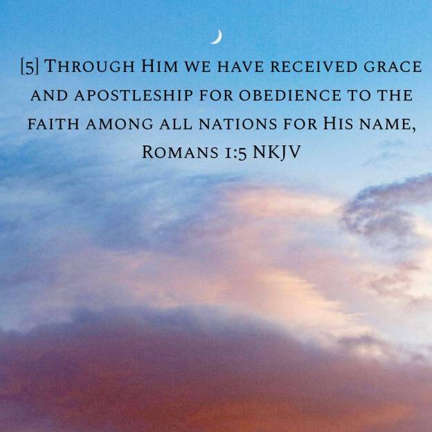 The Apostle Paul begins here with the foundation of our salvation, “By or Through Him (Christ) We Have Received Grace” It’s only by Gods Grace that we are saved and not by anything we are doing ourselves. As Paul said to the Ephesians “Its by grace you are saved , through faith, and not of yourselves, its a gift of God” (Ephesians 2:8) This destroys any false religious system of works based salvation.