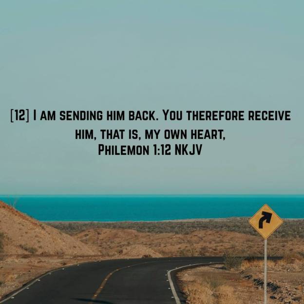 I am sending him back. You therefore receive him, that is, my own heart, whom I wished to keep with me, that on your behalf he might minister to me in my chains for the gospel. But without your consent I wanted to do nothing, that your good deed might not be by compulsion, as it were, but voluntary. Philemon 1:12-14