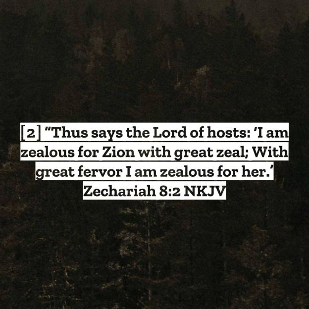 Again the word of the LORD of hosts came, saying, “Thus says the LORD of hosts: ‘I am zealous for Zion with great zeal; With great fervor I am zealous for her.’ “Zechariah 8:1-2