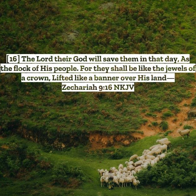 The LORD their God will save them in that day, As the flock of His people. For they shall be like the jewels of a crown, Lifted like a banner over His land—  For how great is its goodness And how great its beauty! Grain shall make the young men thrive, And new wine the young women.  V16-17