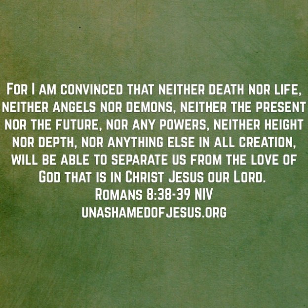 For I am persuaded, that neither death, nor life, nor angels, nor principalities, nor powers, nor things present, nor things to come, Nor height, nor depth, nor any other creature, shall be able to separate us from the love of God, which is in Christ Jesus our Lord.  Romans 8:38-39