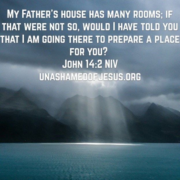 My Father’s house has many rooms; if that were not so, would I have told you that I am going there to prepare a place for you? John 14:2