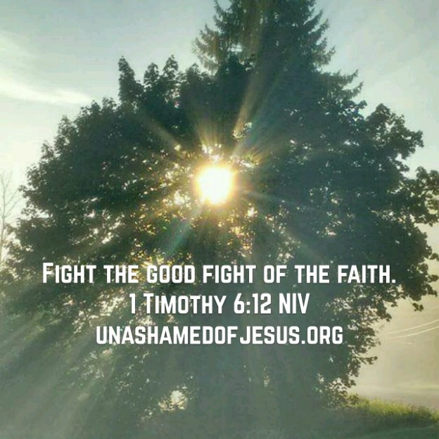 So fight the good fight of faith, but not a physical battle but a spiritual warfare. For our battle is not against the flesh but against evil (Ephesians 6:12) Press on toward the prize which is our higher calling of eternal life (Philippians 3:14) our kingdom is not of this world (John 18:36) , but of Gods Kingdom which will reign for all eternity in Jesus Name Amen