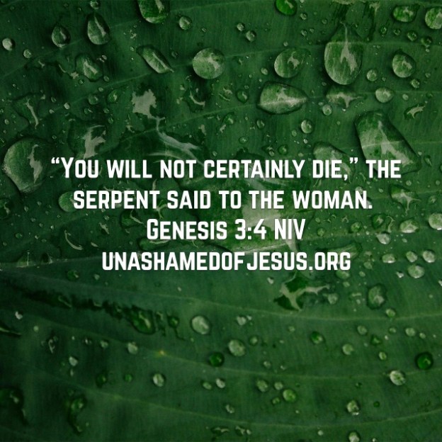 “You will not certainly die,” the serpent said to the woman. Genesis 3:4