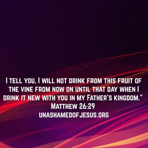 I tell you, I will not drink from this fruit of the vine from now on until that day when I drink it new with you in my Father’s kingdom.” Matthew 26:29