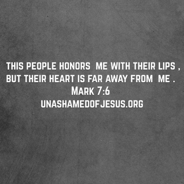 And He said to them, “Rightly did Isaiah prophesy of you hypocrites, as it is written: ‘THIS PEOPLE HONORS ME WITH THEIR LIPS, BUT THEIR HEART IS FAR AWAY FROM ME ‘BUT IN VAIN DO THEY WORSHIP ME, TEACHING AS DOCTRINES THE PRECEPTS OF MEN.’ Mark 7:6-7