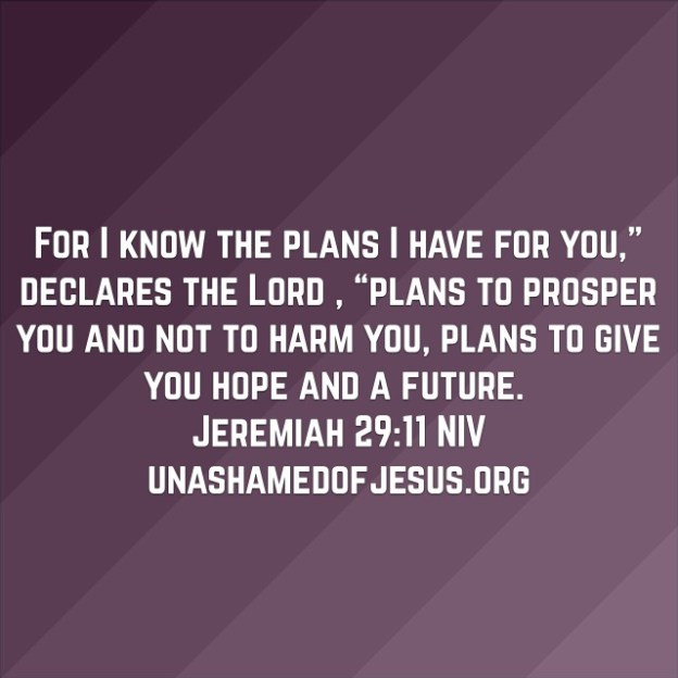 For I know the plans I have for you,” declares the LORD, “plans to prosper you and not to harm you, plans to give you hope and a future. Jeremiah 29:11