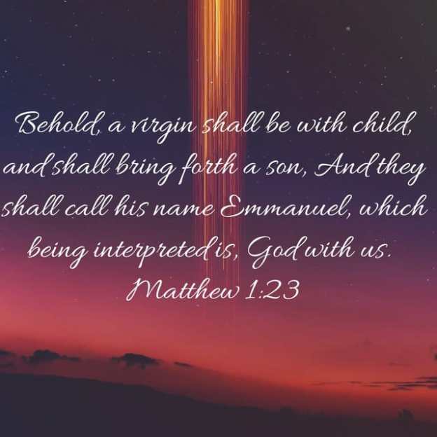 And she shall bring forth a son, and thou shalt call his name JESUS: for he shall save his people from their sins. Now all this was done, that it might be fulfilled which was spoken of the Lord by the prophet, saying, Behold, a virgin shall be with child, and shall bring forth a son, and they shall call his name Emmanuel, which being interpreted is, God with us. Then Joseph being raised from sleep did as the angel of the Lord had bidden him, and took unto him his wife: And knew her not till she had brought forth her firstborn son: and he called his name JESUS. Matthew 1:21-25