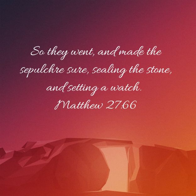 Now the next day, that followed the day of the preparation, the chief priests and Pharisees came together unto Pilate, Saying, Sir, we remember that that deceiver said, while he was yet alive, After three days I will rise again. Command therefore that the sepulchre be made sure until the third day, lest his disciples come by night, and steal him away, and say unto the people, He is risen from the dead: so the last error shall be worse than the first.Pilate said unto them, Ye have a watch: go your way, make it as sure as ye can. So they went, and made the sepulchre sure, sealing the stone, and setting a watch. Matthew 27:62-66