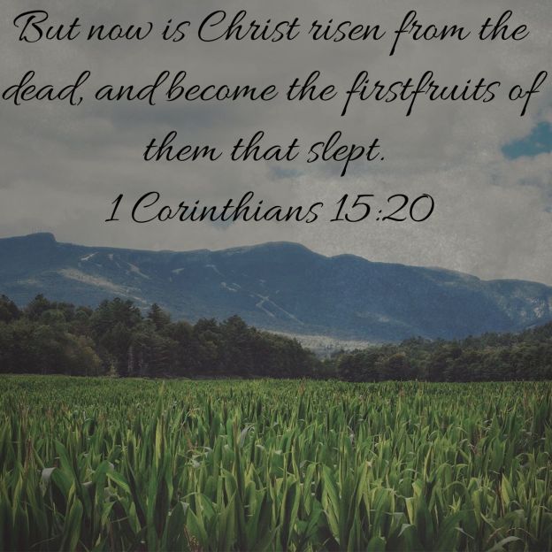 But now is Christ risen from the dead, and become the firstfruits of them that slept. For since by man came death, by man came also the resurrection of the dead. For as in Adam all die, even so in Christ shall all be made alive. But every man in his own order: Christ the firstfruits; afterward they that are Christ’s at his coming. 1 Corinthians 15:20-23