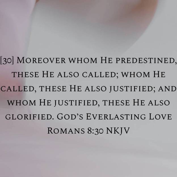 Then the Apostle Paul gives us some great theology here , first God calls, then justifies, then glorifies. You are first called by Christ to be saved (1 Corinthians 1:9) Yes we need to respond to this calling, but God has called you to come home! But of course we are separated from God because of our sin (Isaiah 59:2) This is what Jesus did for us on the cross, he died for our sins and made us justified before our Father (2 Corinthians 5:21) You might say, but I’m still stuck in this sinful body, one day you will be resurrected into a glorified perfect body (1 Corinthians 15:42-44) During this process our souls are being sanctified by the Holy Spirit, and we are sealed for the day of our redemption (Ephesians 1:13)