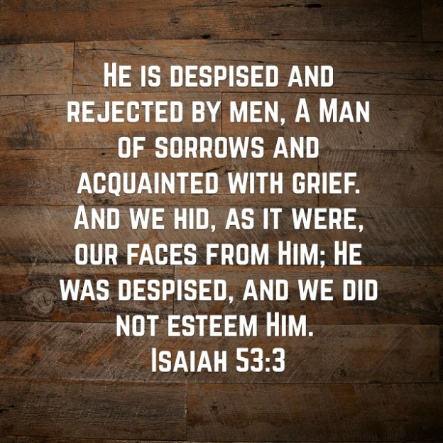 He is despised and rejected of men; a man of sorrows, and acquainted with grief: and we hid as it were our faces from him; he was despised, and we esteemed him not. Isaiah 53:3