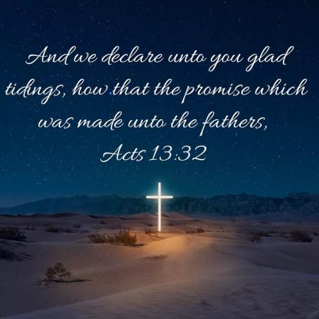 And we declare unto you glad tidings, how that the promise which was made unto the fathers, God hath fulfilled the same unto us their children, in that he hath raised up Jesus again; as it is also written in the second psalm, Thou art my Son, this day have I begotten thee. And as concerning that he raised him up from the dead, now no more to return to corruption, he said on this wise, I will give you the sure mercies of David. Acts 13:32-34