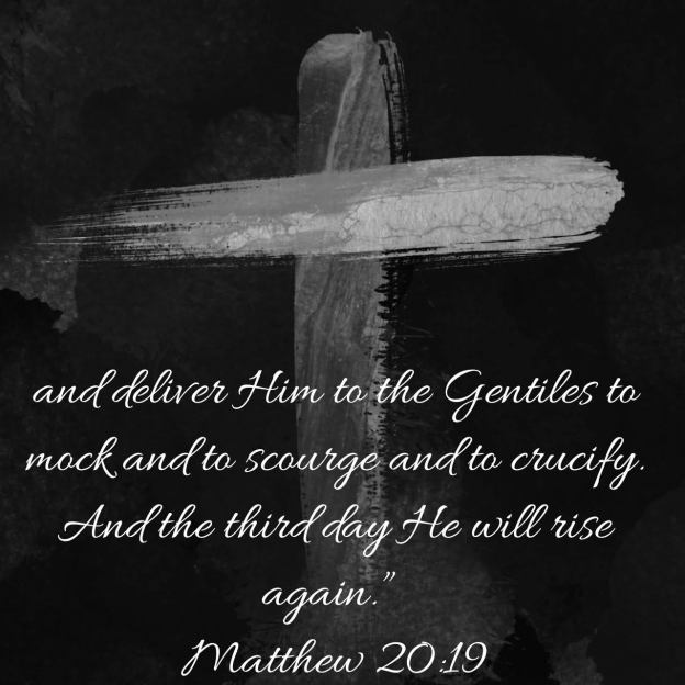 And Jesus going up to Jerusalem took the twelve disciples apart in the way, and said unto them, Behold, we go up to Jerusalem; and the Son of man shall be betrayed unto the chief priests and unto the scribes, and they shall condemn him to death, And shall deliver him to the Gentiles to mock, and to scourge, and to crucify him: and the third day he shall rise again. Matthew 20:17-19