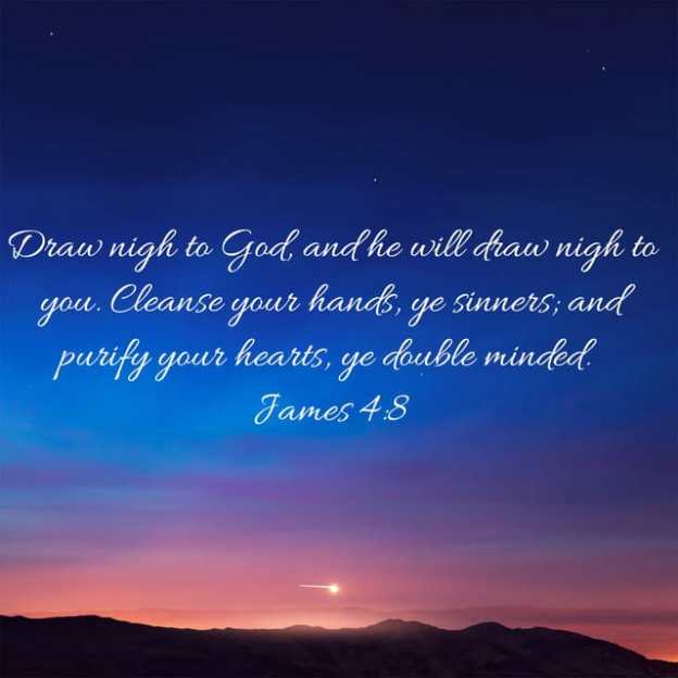 Draw nigh to God, and he will draw nigh to you. Cleanse your hands, ye sinners; and purify your hearts, ye double minded. James 4:8