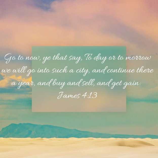 Go to now, ye that say, To day or to morrow we will go into such a city, and continue there a year, and buy and sell, and get gain: Whereas ye know not what shall be on the morrow. For what is your life? It is even a vapour, that appeareth for a little time, and then vanisheth away. James 4:13-14