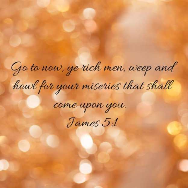 Go to now, ye rich men, weep and howl for your miseries that shall come upon you. Your riches are corrupted, and your garments are motheaten. James 5:1-2