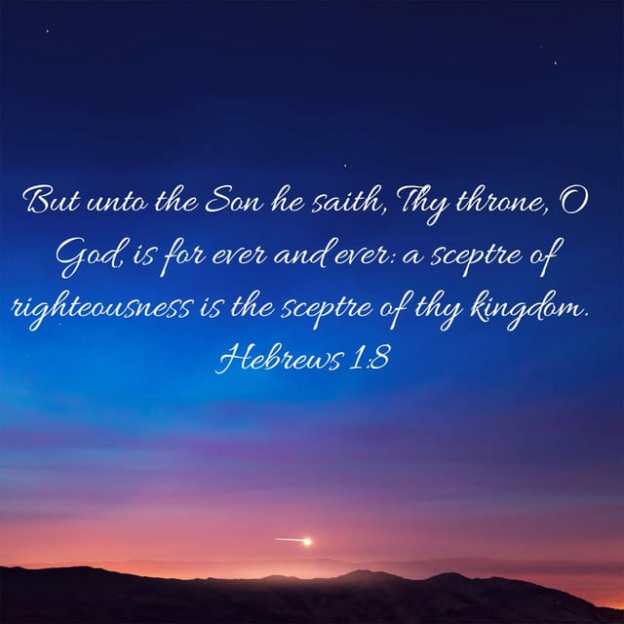 But unto the Son he saith, Thy throne, O God, is for ever and ever: a sceptre of righteousness is the sceptre of thy kingdom. Hebrews 1:8 (KJV)