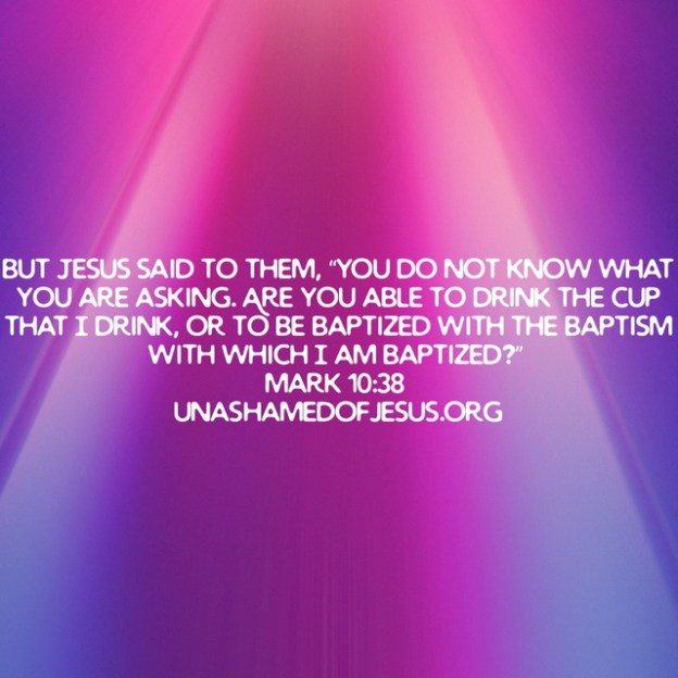 But Jesus said to them, “You do not know what you are asking. Are you able to drink the cup that I drink, or to be baptized with the baptism with which I am baptized?” Mark 10:38