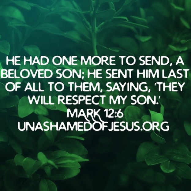 He had one more to send, a beloved son; he sent him last of all to them, saying, ‘They will respect my son.’But those vine-growers said to one another, ‘This is the heir; come, let us kill him, and the inheritance will be ours!’They took him, and killed him and threw him out of the vineyard. Mark 12:6-8