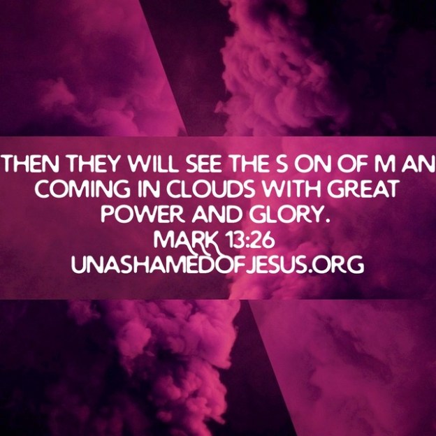 Then they will see THE SON OF MAN COMING IN CLOUDS with great power and glory. Mark 13:26