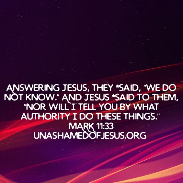 Answering Jesus, they said, “We do not know.” And Jesus said to them, “Nor will I tell you by what authority I do these things.” Mark 11:33