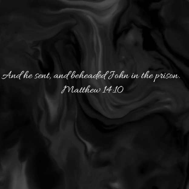 But when Herod’s birthday was kept, the daughter of Herodias danced before them, and pleased Herod. Whereupon he promised with an oath to give her whatsoever she would ask. And she, being before instructed of her mother, said, Give me here John Baptist’s head in a charger. And the king was sorry: nevertheless for the oath’s sake, and them which sat with him at meat, he commanded it to be given her. And he sent, and beheaded John in the prison. And his head was brought in a charger, and given to the damsel: and she brought it to her mother. And his disciples came, and took up the body, and buried it, and went and told Jesus. Matthew 14:6-12