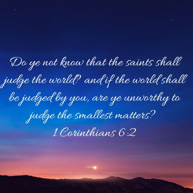 It’s funny when you mention the topic of judgment, because the first thing someone will say to you is “Don’t Judge Me”, and then they will go on to quote Matthew 7 out of context to prove their point. Little do these people know “The Saints Shall Judge The World” This would probably be a shocking revelation to most people , even to most Christians.