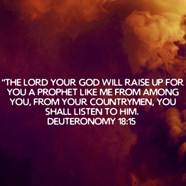 The LORD your God will raise up for you a prophet like me from among you, from your countrymen, you shall listen to him. Deuteronomy 18:15