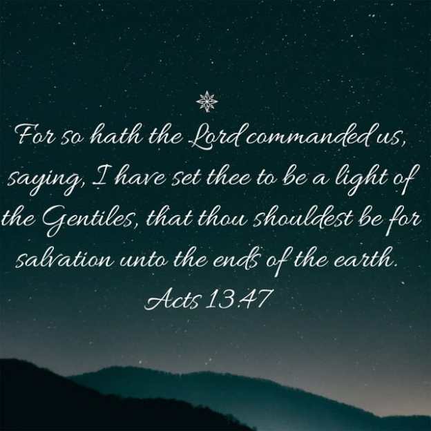 For so hath the Lord commanded us, saying, I have set thee to be a light of the Gentiles, that thou shouldest be for salvation unto the ends of the earth. And when the Gentiles heard this, they were glad, and glorified the word of the Lord: and as many as were ordained to eternal life believed. And the word of the Lord was published throughout all the region. Acts 13:47-49