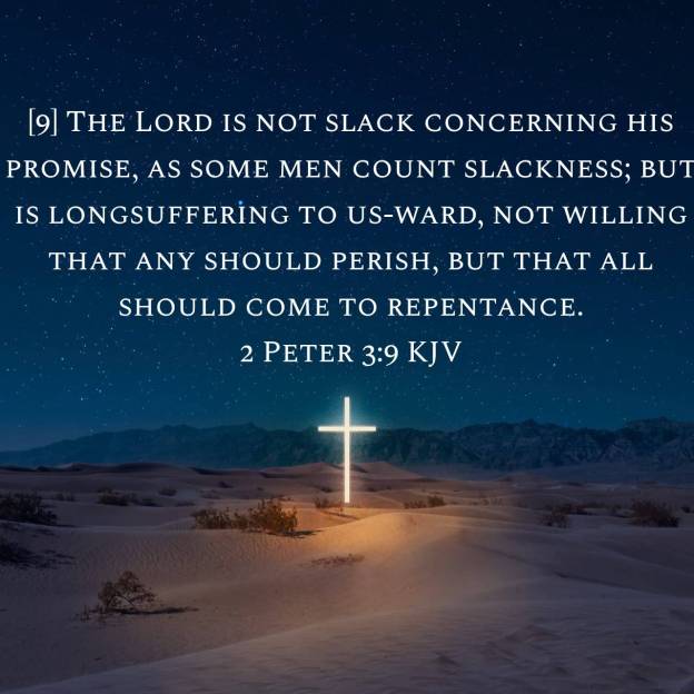 For this they willingly are ignorant of, that by the word of God the heavens were of old, and the earth standing out of the water and in the water: Whereby the world that then was, being overflowed with water, perished: But the heavens and the earth, which are now, by the same word are kept in store, reserved unto fire against the day of judgment and perdition of ungodly men. But, beloved, be not ignorant of this one thing, that one day is with the Lord as a thousand years, and a thousand years as one day. The Lord is not slack concerning his promise, as some men count slackness; but is longsuffering to us-ward, not willing that any should perish, but that all should come to repentance. 2 Peter 3:5-9