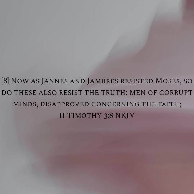 For of this sort are they which creep into houses, and lead captive silly women laden with sins, led away with divers lusts, Ever learning, and never able to come to the knowledge of the truth Now as Jannes and Jambres withstood Moses, so do these also resist the truth: men of corrupt minds, reprobate concerning the faith.But they shall proceed no further: for their folly shall be manifest unto all men, as theirs also was. 2 Timothy 3:6-9