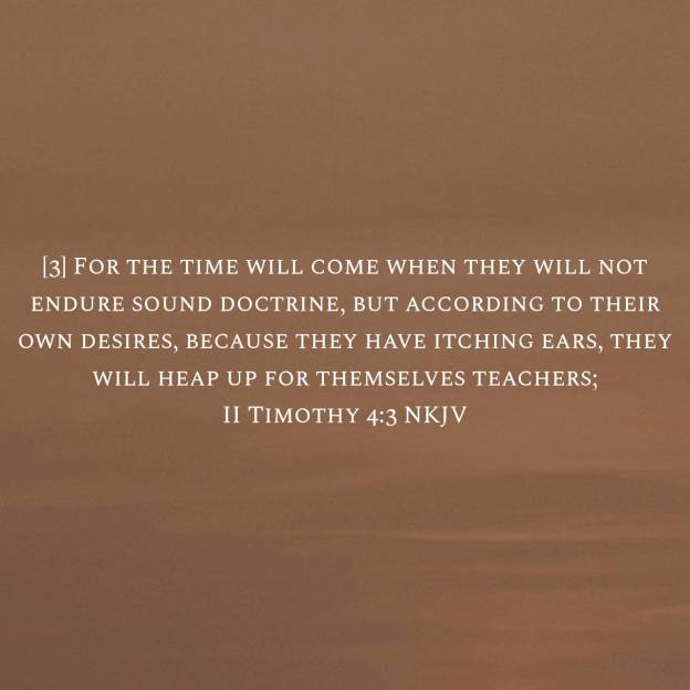 So here’s the warning, don’t be deceived, because Christ said even some of the elect will be deceived. So what is the root behind these false teachings? As the Apostle Paul states “but after their own lusts, because they have itching ears” These are carnally minded people, not regenerated by the Holy Spirit. They want to feed the flesh, so they reject anything edifying by God. This is the root of all false religion, the flesh, the carnally minded and driven person