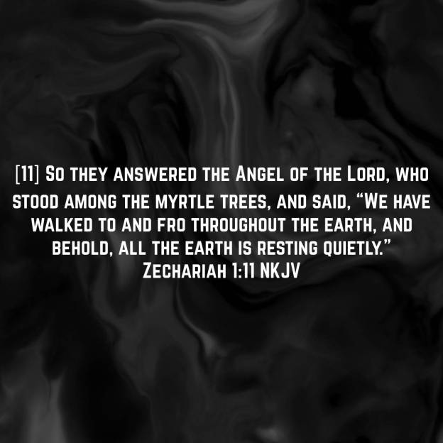So they answered the Angel of the LORD, who stood among the myrtle trees, and said, “We have walked to and fro throughout the earth, and behold, all the earth is resting quietly.” (v11)
